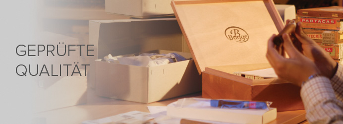 Im Rahmen unserer Qualitätssicherung werden die Original-Kistensiegel der Herkunftsländer fachmännisch durchtrennt und mit dem Paul Bugge | Geprüfte Qualität Siegel nach Kontrolle wieder versiegelt. Auch Paul Bugge Packungen, die mit einzelnen Premiumzigarren für Sie zusammengestellt wurden, werden von uns versiegelt.