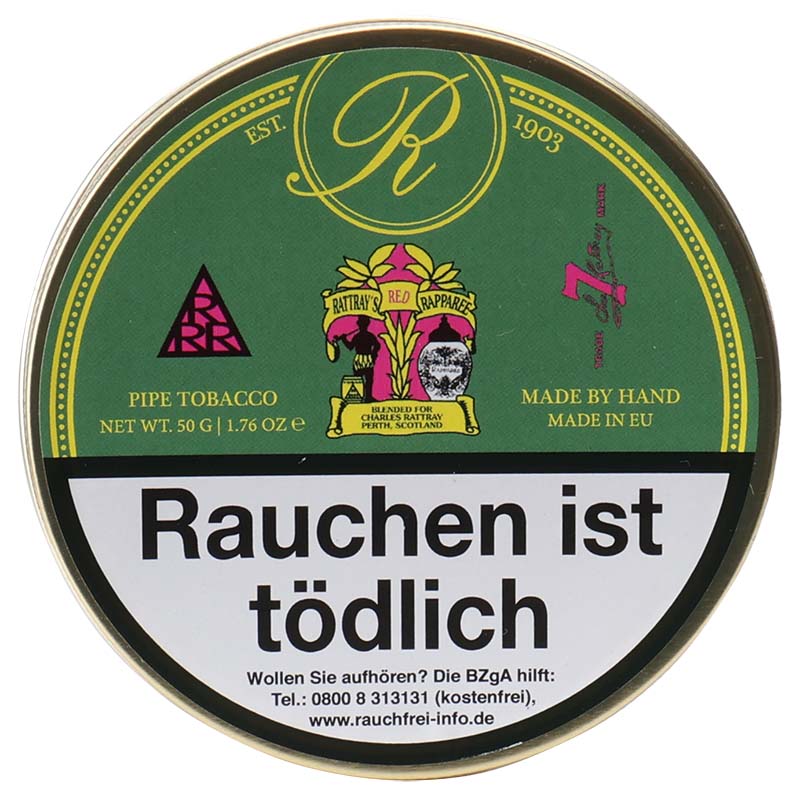 Rattray's Red Rapparee ist ein zeitloser Blend, der durch sein rauchiges Aroma und seine harmonische Komposition besticht. Würziger Latakia trifft auf unterschiedlich geschnittene Virginia-Tabake, was für eine vielschichtige, vollmundige Basis sorgt. Dunkler Cavendish und ein deutlicher Anteil Orient runden das Geschmackserlebnis ab und verleihen dieser Mischung ihren einzigartigen, unverwechselbaren Charakter. Mit einer Stärke von 4 und einer Raumnote von 3 bietet Red Rapparee eine kraftvolle, ausgewogene Raucherfahrung, die durch ihre rauchige Tiefe und würzige Komplexität beeindruckt. Ideal für Kenner klassischer englischer Blends, die eine intensive Rauchnote und eine ausgewogene Balance zu schätzen wissen.