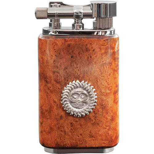 El Maestro besticht durch seine edlen Dekor-Ausführungen, die in insgesamt drei raffinierten Designs erhältlich sind. Genießen Sie die Verbindung von ästhetischem Design und durchdachter Technik. Das markante Sonnen- und Pfeifenemblem, gefertigt aus echtem Sterling-Silber, verleiht jedem El Maestro Feuerzeug eine unvergleichliche Eleganz und wertet Ihr Raucherlebnis auf. Der feine Unterschied liegt im Detail: Der robuste Körper des Feuerzeugs stammt aus der renommierten Produktion der in Tokio ansässigen Firma Pearl und sorgt mit seinem massiven Messingtank für eine Gaskapazität von 4 Gramm - jederzeit bereit, den perfekten Funken zu entzünden.