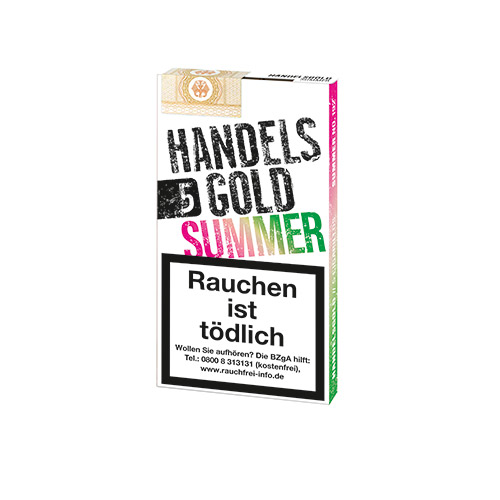 Ab sofort erweitert die neue Handelsgold Summer die aromatische Vielfalt der Handelsgold Sweet Zigarillo-Reihe. Mit ihrem intensiv sommerlichen Melonen Aroma und einem unschlagbaren Preis-Leistungs-Verhältnis überzeugt die neue Zigarillo-Variante auf ganzer Linie.